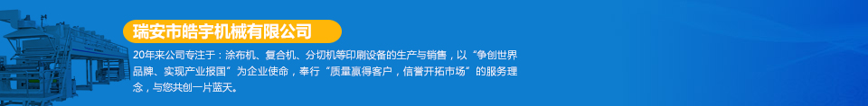 瑞安市皓宇機(jī)械有限公司是瑞安一家私營(yíng)責(zé)任有限公司,注冊(cè)資金200萬(wàn),員工40余人,是具有獨(dú)立法人地位,專業(yè)生產(chǎn)定做各種非標(biāo)準(zhǔn)涂布機(jī)、復(fù)合機(jī)、印刷機(jī)、分切機(jī)、壓膜機(jī)等機(jī)械設(shè)備的制造廠。公司的機(jī)器主要用于生產(chǎn)保護(hù)膜、膠帶、雙面膠、不干膠、相紙、油畫布、汽車防爆膜、熱轉(zhuǎn)印、燙金膜、離型膜、離型紙、軟包裝印刷、軟包裝復(fù)合、軟包裝分切等各種產(chǎn)品...  [詳細(xì)]